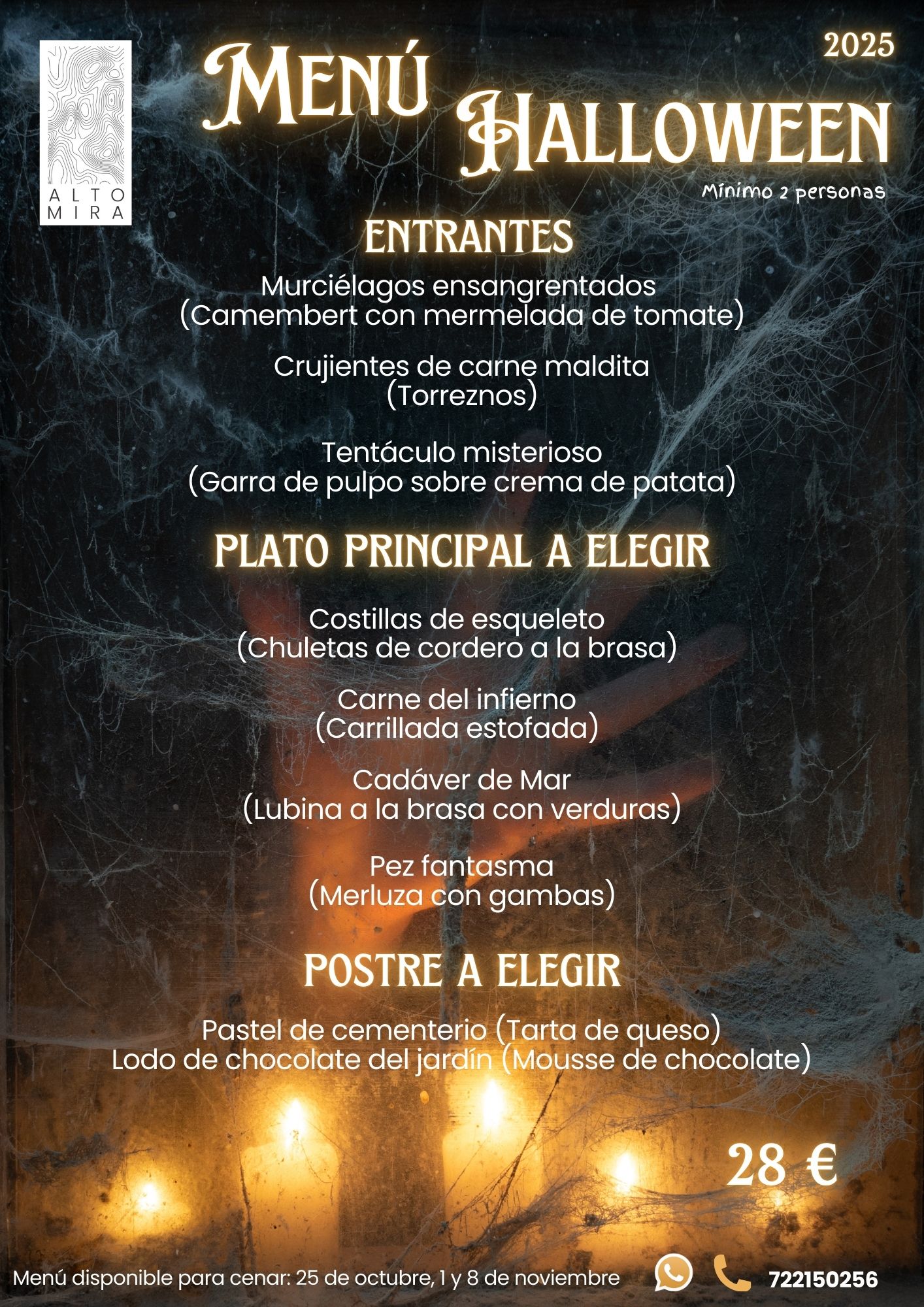 Cena en nuestro restaurante las noches del sábado 25 de octubre, 1 y 8 de noviembre. Celebramos Halloween en Altomira, ¡no te lo pierdas!